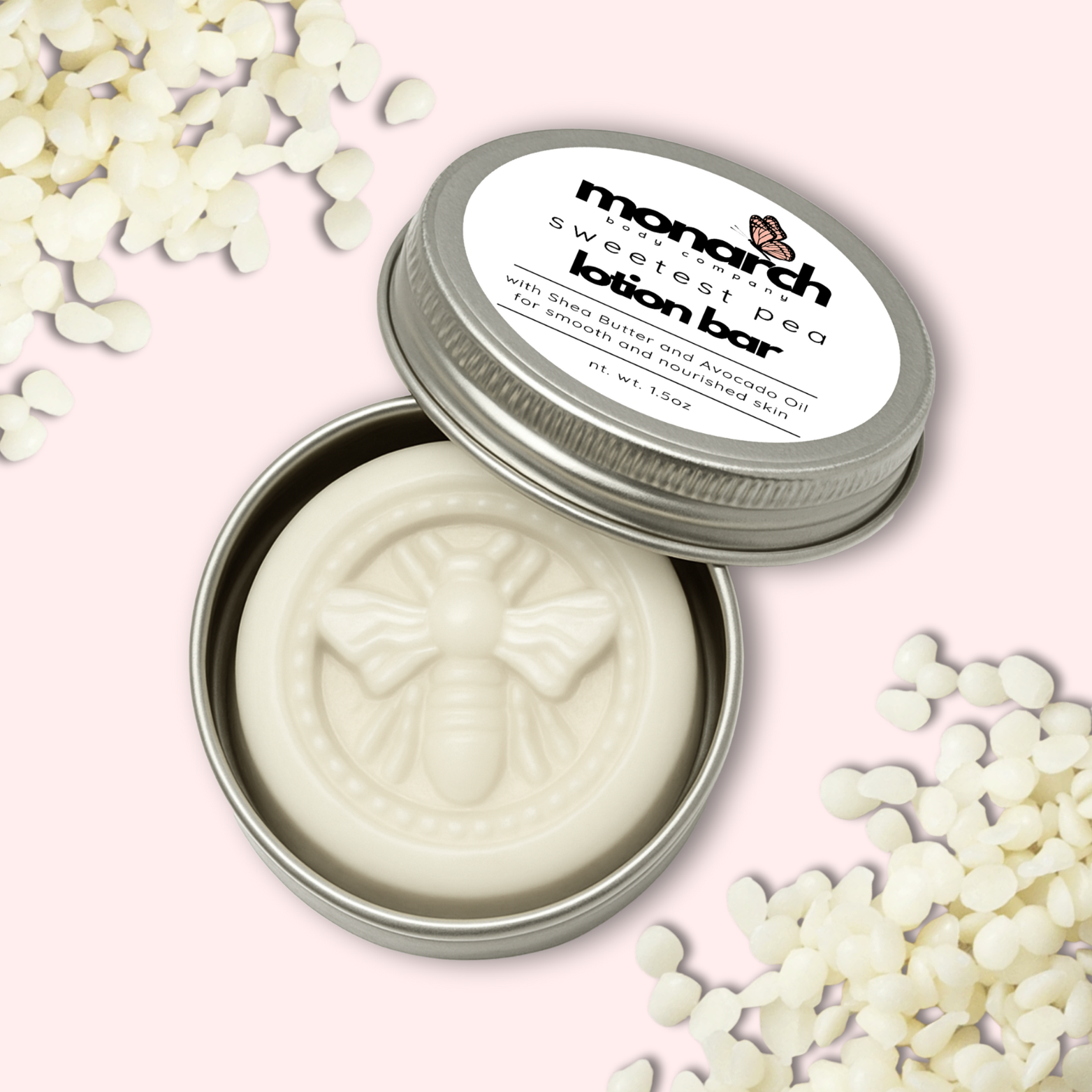 Monarch Body Company’s solid lotion bar is a concentrated balm of skin-softening butters and oils, pressed into a convenient, travel-ready form. Housed in a sealable tin and designed to melt gently with the warmth of your hands, it glides over dry areas to soothe, condition, and restore — no mess, no waste.
